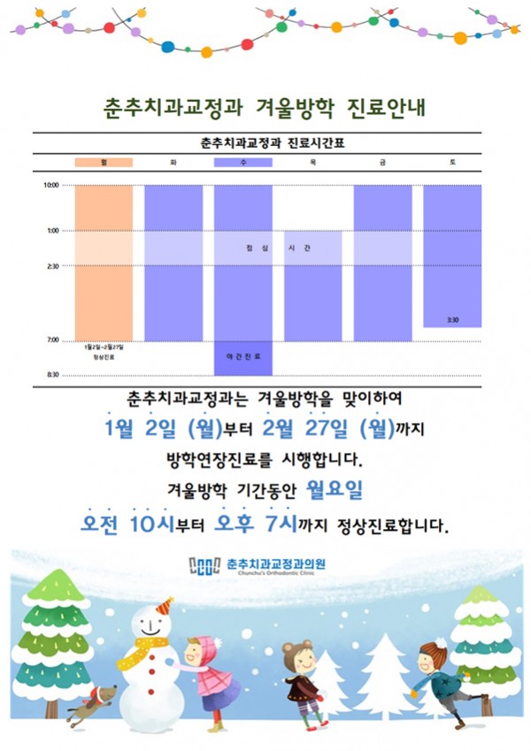 춘추치과교정과는 2023년 1월 2일부터 겨울방학진료로